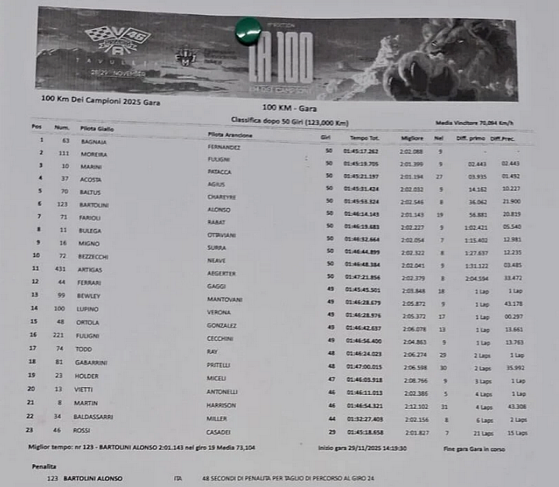 Les hostilités ont donc été lancées par les qualifications, remportées par le binôme Diogo Moreira/Federico Fuligni, devant Valentino Rossi/Mattia Casadei, et David Alonso/Elia Bartolini pour la course de 100 kilomètres de ce samedi. Mais avant, la course sprint disputée hier a été remportée par Valentino Rossi, puis l’Americana par Elia Bartolini.