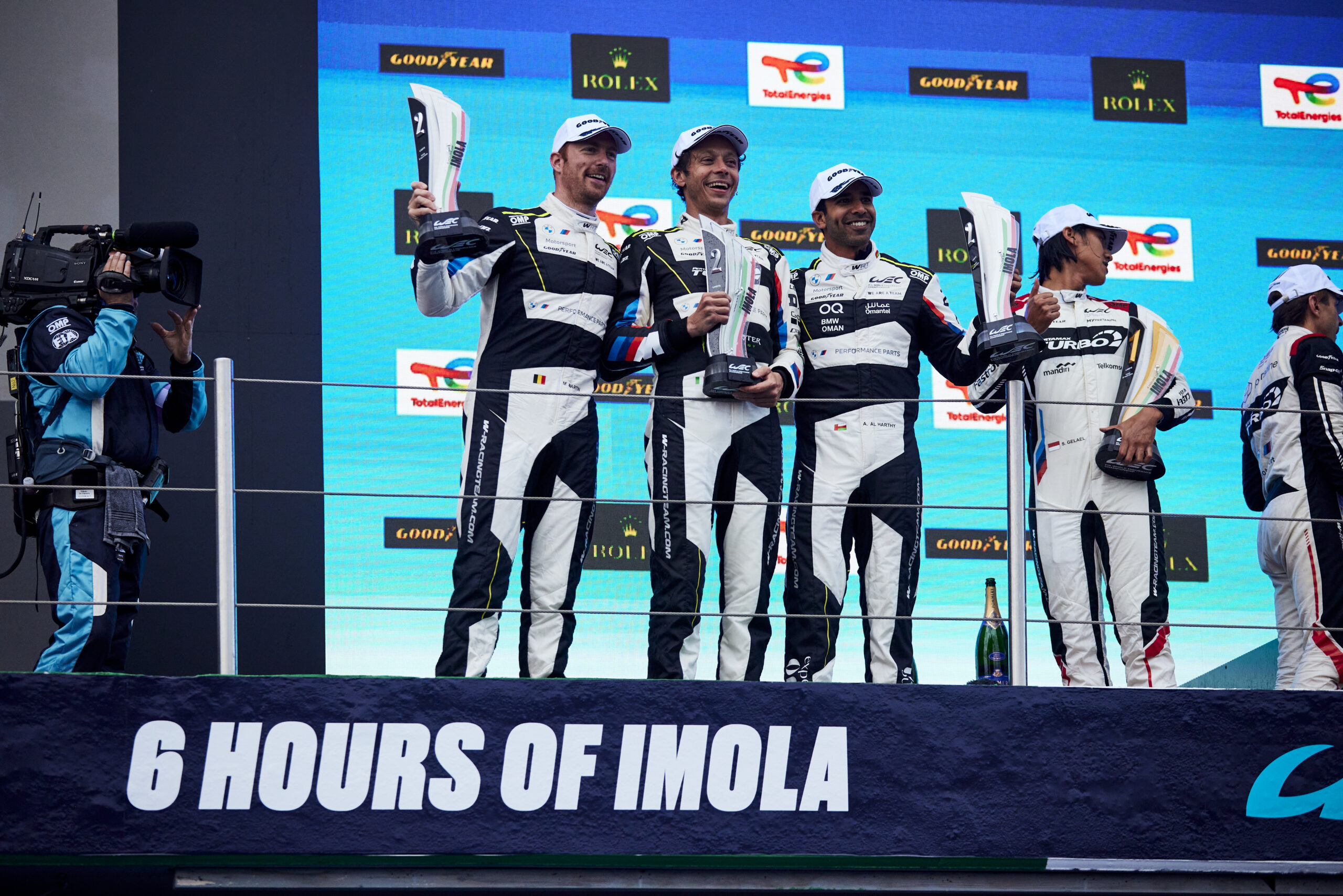 Engagé dans l’équipage de la voiture n°46, aux côtés de Maxime Martin et Ahmad Al Harthy, Valentino Rossi décroche son premier podium en FIA WEC. Bien que satisfait du résultat, l’Italien ne cachait pas un certain regret de ne pas être monté sur la plus haute marche du podium.