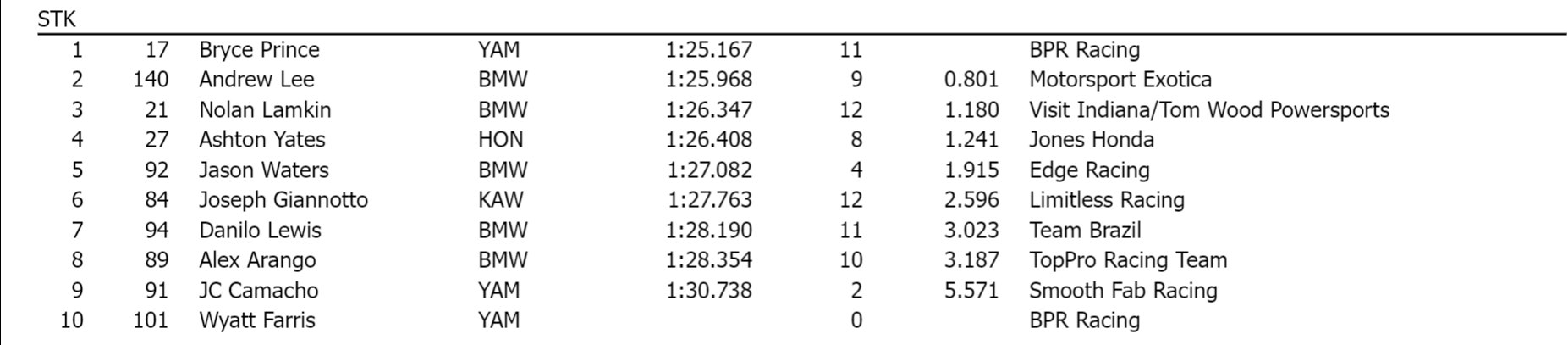 Comme ce fut le cas pour les essais libres, dix pilotes de Stock 1000 ont pris part à la séance en raison du grand nombre d’inscrits dans la classe.