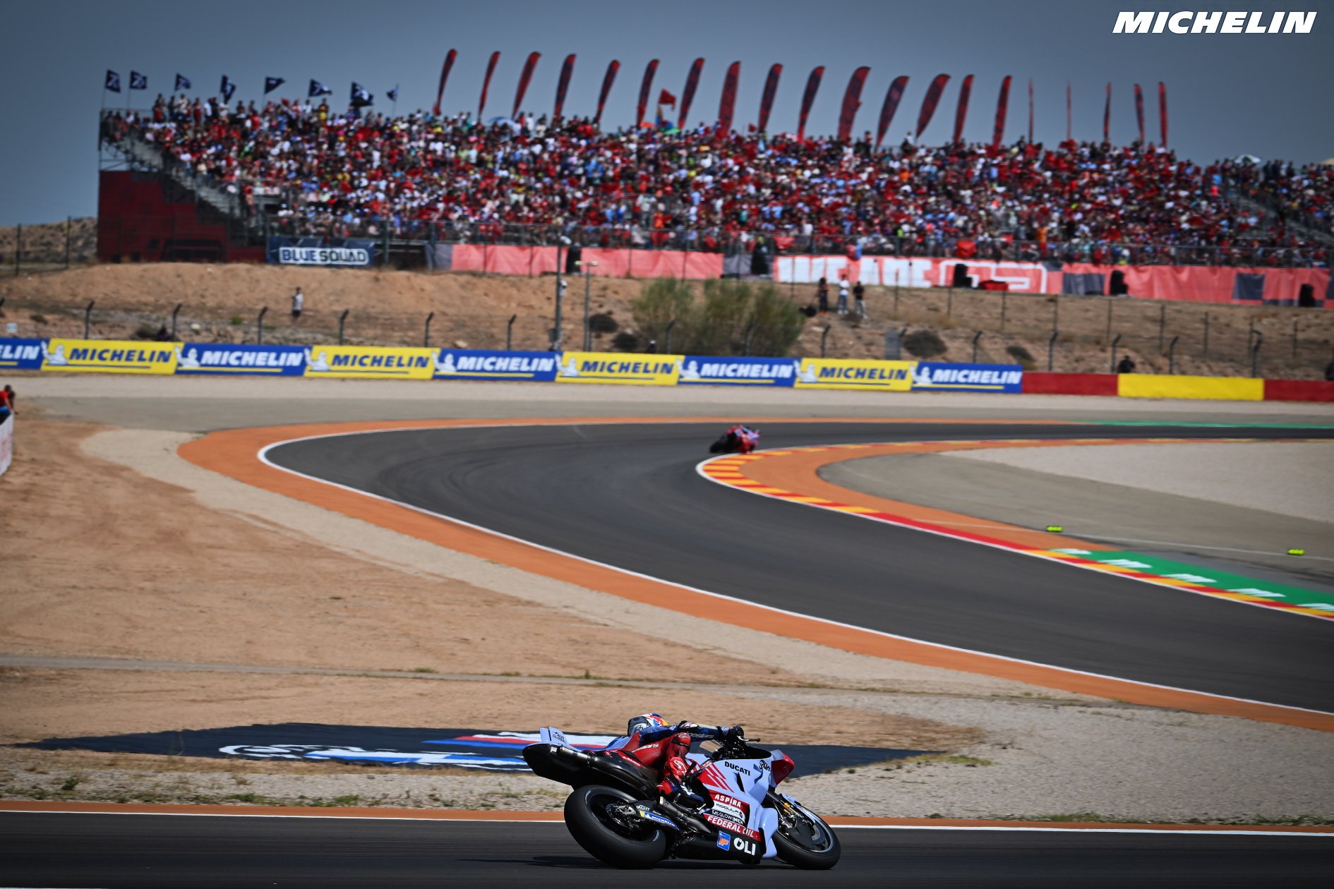 Francesco Bagnaia est arrivé à Aragon avec les commandes du championnat. Il quittera l’Espagne avec 23 points de retard sur Jorge Martin. L’italien avait cependant de grandes chances de limiter la casse en course principale, alors qu’à quelques boucles du drapeau à damier il semblait fondre sur Alex Marquez.