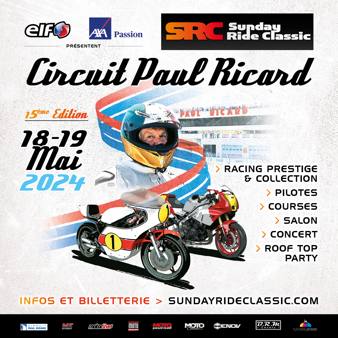 Créée en Mars 2009, la Sunday Ride Classic (SRC) fête ses 15 ans au Circuit Paul Ricard les 18 / 19 Mai prochains. Qui mieux que le roi AGOSTINI avec ses 15 titres (et les 15 étoiles sur son casque) pour symboliser ces 15 années ?