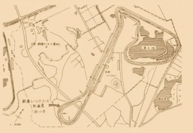 Mais des rizières s’étendaient tout autour et Soichiro Honda a exprimé sa préoccupation que « les rizières ne soient pas détruites » et a changé à la fois la location et le plan de construction pour se situer sur l’emplacement actuel, qui était une forêt rabougrie. Le plan de construction du circuit s’est adapté à la topologie du terrain accidenté pour, après les évolutions suivantes, se figer sur le tracé de 1962.