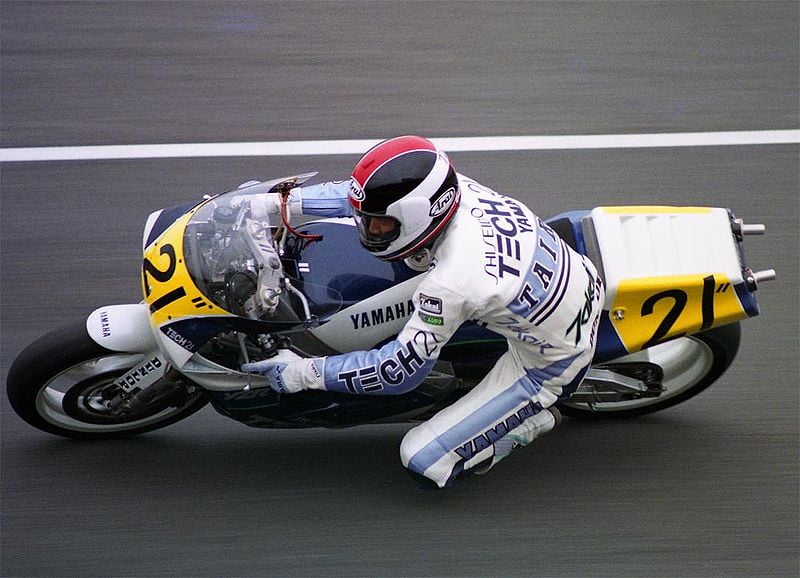 Poleman surprise à Suzuka ! C’est le local Tadahiko Taira qui est le plus rapide sur un tour, devant tous les ténors. Il avait déjà réalisé l’exploit l’année précédente et remet le couvert en 1989. Sur Yamaha/Tech-21, il termine 8e. Photo : Rikita