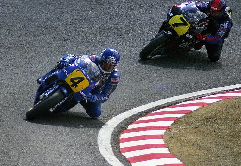 Mais vient le Grand Prix des Nations, tenu sur le circuit de Misano. Cette course est restée très célèbre, et pas pour des raisons évidentes. Le circuit venait de se doter d’une nouvelle surface jugée extrêmement glissante. Un week-end pluvieux s’annonce, et une possible catastrophe se profile. Kevin Schwantz, qui part de la pole, réalise un bon départ tout comme Christian Sarron et Wayne Rainey ainsi que les autres habitués des avants postes.