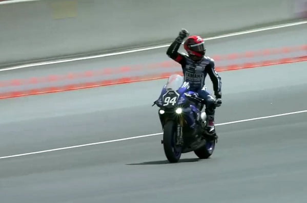 A midi, donc à trois heures du drapeau à damier, David Checa et la R1 du GMT possédaient 27 secondes d’avance sur Broc Parkes et celle du YART. Mike di Meglio était pressenti pour le relais suivant, Niccolo Canepa étant manifestement moins rapide que ses deux coéquipiers. A 12h30, Mike repartait alors que Marvin Fritz prenait le relais sur la YART. Après les ravitaillements des deux Yamaha, l’écart était de 38 secondes en faveur du GMT94. Checa et di Meglio le portaient à 1’08 à une heure du drapeau à damier, puis imposaient finalement la Yamaha.