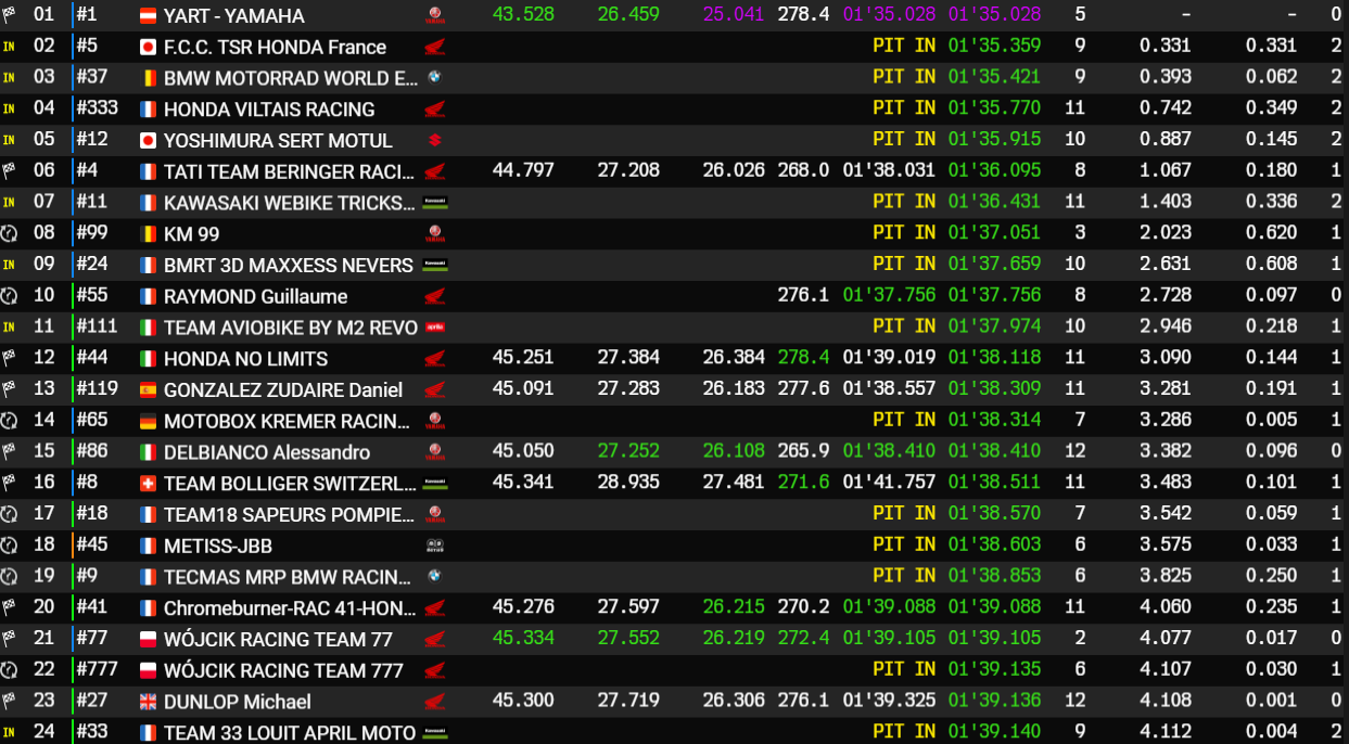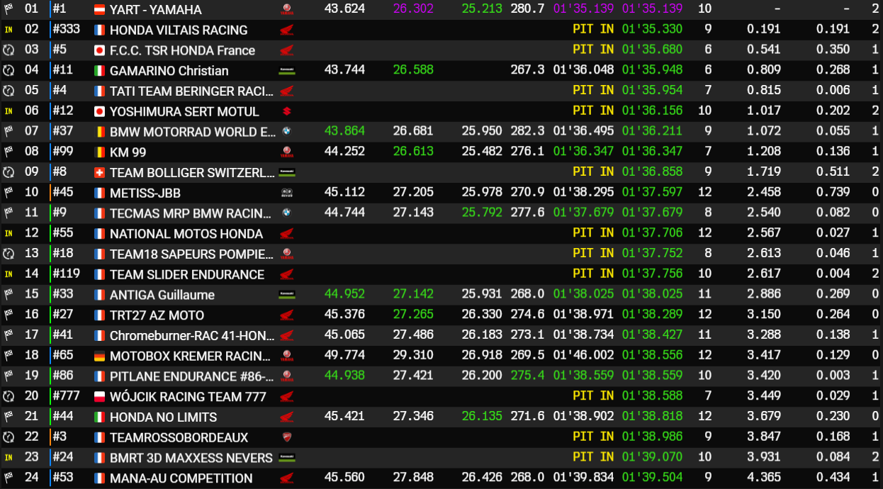 24H Motos 2024 – Classement des Essais Qualificatifs 1 (Pilotes Verts) :