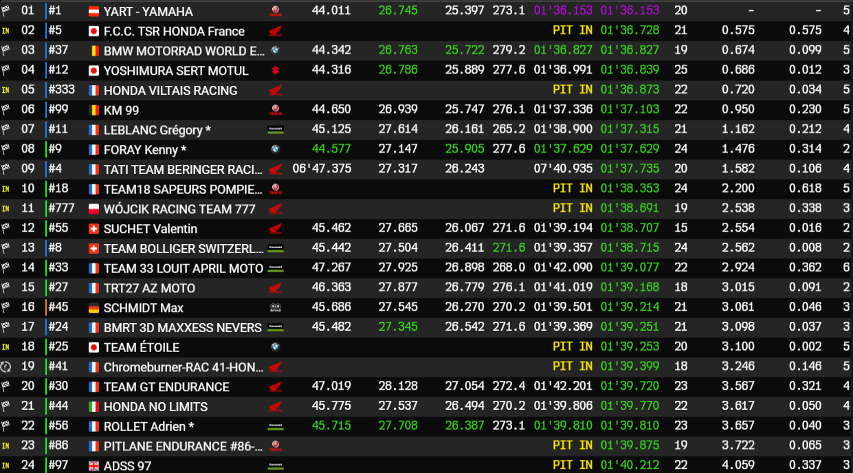 Yart-Yamaha entame son samedi de la meilleure des manières, en s’adjugeant la première place du Warm-Up. C’est Niccolo Canepa qui a pris les commandes de la machine n°1 pour claquer un tour en 1:36.153 lors de son ultime tentative. La Honda n°5 termine deuxième, à plus de six dixièmes, tandis que la Yoshimura Sert Motul n°12, classée deuxième sur la grille de départ, termine la séance au 4e rang après avoir bouclé un total de 25 passages sur le circuit Bugatti.
