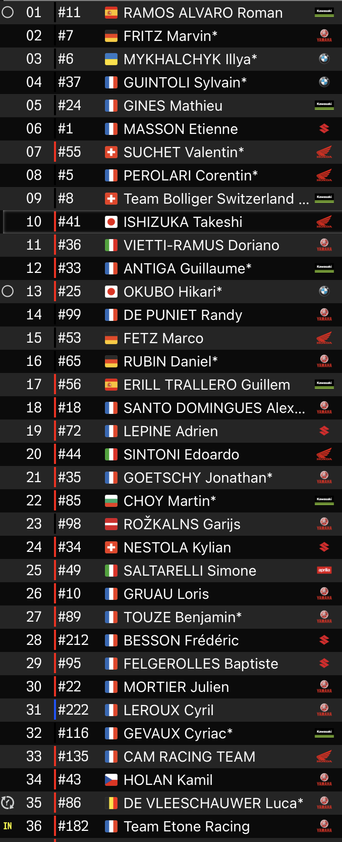En tête depuis la nuit, la Kawasaki n°11 de Webike Trickstar a vu son avance fondre après une chute de Mike Di Meglio à La Chapelle. Si le pilote a pu repartir rapidement, la moto a perdu deux tours lors d’un passage obligé aux stands pour réparer le demi-guidon endommagé.