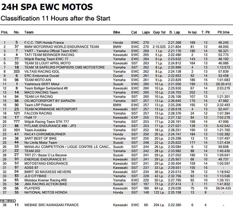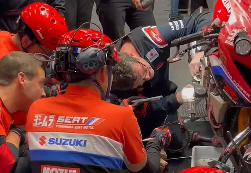 25 minutes plus tard, la GSX-R franco-nippone repart, en 12e position, avec 10 tours de retard. On imagine la déception chez les rouge et noirs…