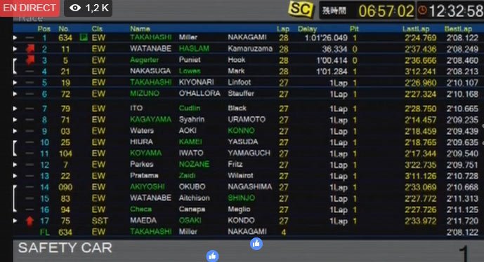 Pendant ce temps-là, une Safety Car prend la piste, ce qui semble d’abord complètement redistribuer les cartes. Mais finalement, une fois la FCC TSR et la Kawasaki de Leon Haslam passées par les ravitaillements, on retrouve la même hiérarchie : Honda (Jack Miller) et Yamaha (Alex Lowes) dans la même seconde, devant la FCC TSR pilotée par Randy de Puniet.