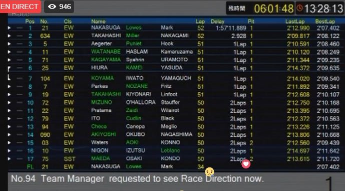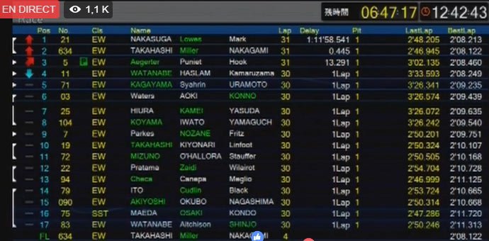Le rythme ralentit encore, en 2’22, et Takashi repositionne la Honda en tête alors que la Kawasaki pilotée par Haslam perd 10 secondes en dépassant les attardés. Même punition pour Aegerter qui se retrouve soudainement à 44 secondes de la tête.