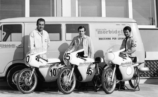 Giancarlo Morbidelli a produit des motos de compétition de la 50cc à la 500cc, même si ses 125cc sont celles qui ont connu le plus de succès et fait rêver tous les pilotes de l’époque.