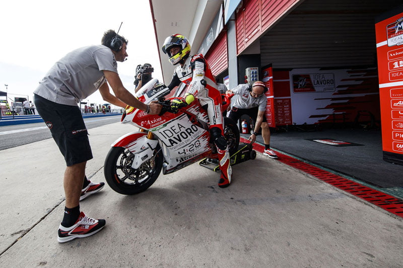 A l’inverse, rien n’a encore bougé chez Forward Racing, et la structure Moto2, dirigée par Giovanni Cuzari et basée en Suisse, continuait en Argentine à porter les couleurs de IdeaLavoro, filiale à 100% d’Alma, sur les MV Augusta de Dominique Aegerter et Stefano Manzi.