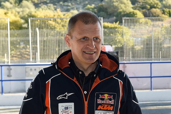 Avec plusieurs titres de Champion du Monde à son actif, dont ceux récents de Johann Zarco, Aki Ajo est une des grandes figures des catégories Moto2 et Moto3. C’est à lui que KTM confie le soin de défendre ses intérêts dans ces deux classes, avec succès puisque le team manager finlandais totalise 150 podiums, dont la plupart obtenus avec des motos autrichiennes.