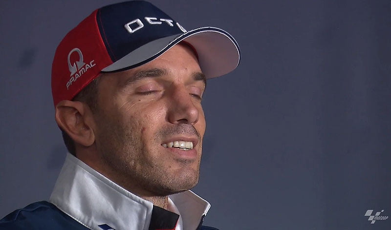 « Je tiens à remercier tout le monde et en particulier Pramac car ils m’ont donné la chance d’être également pilote en MotoE. J’ai quasiment couru avec toutes les motos et dans toutes les catégories, et j’ai vraiment apprécié la MotoE où j’ai couru ces deux dernières années. Et je dois aussi les remercier car ils m’ont dit que la moto pour l’année prochaine était prête. Mais pour le moment, je dois être honnête et dire que la décision que j’ai prise vient de mon cœur, donc je n’arrête pas parce que je n’ai pas de motos ou pas de contrat, mais simplement parce qu’il est temps pour moi de changer de direction. C’est tout. Merci à tout le monde. »