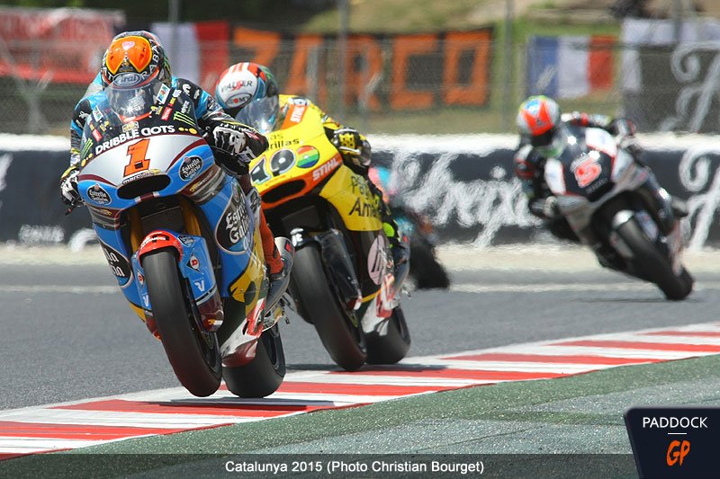 Álex Rins en 2015, à la bataille avec Tito Rabat et Johann Zarco en Catalogne.