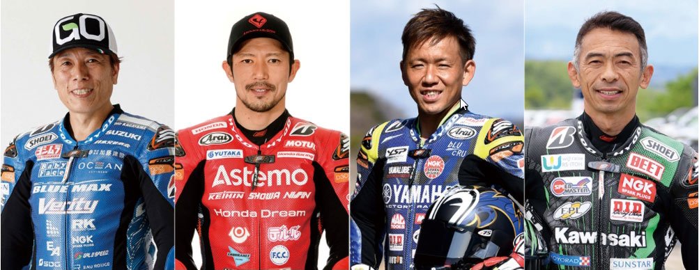 Alors, évidemment, ce championnat offre cette particularité de ne pas être disputé par des « perdreaux de l’année », comme en témoigne par exemple ci-dessous quelques-uns des 13 participants que sont Yukio Kagayama, Ryuichi Kiyonari, Katsuyuki Nakasuga ou Akira Yanagawa, mais il permet aux constructeurs nippons de s’affronter avec férocité pour préparer au mieux les motos qui rouleront ensuite sur nos routes. Question de technologie, mais aussi d’honneur…