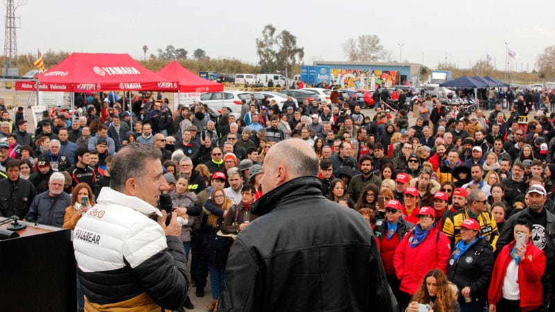 Il était accompagné des anciens pilotes Vicente Ferrer, Vicente Martinez, Antonio Huertas et de son compatriote et ancien pilote de F1, Adrián Campos, qui lui a offert sa première moto de course, une Bultaco Streaker avec laquelle il a débuté en 1979.