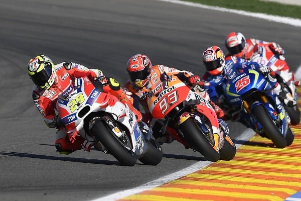 Comme lors des essais IRTA, les Ducati D16GP sont équipées uniquement de leurs ailerons de tête de fourche, mais ceux-ci sont suffisamment volumineux pour que Cal Crutchlow se plaigne des turbulences subies dans le sillage des motos rouges: » quand vous pilotez derrière les Ducati… les turbulences de ces choses sont incroyables. »