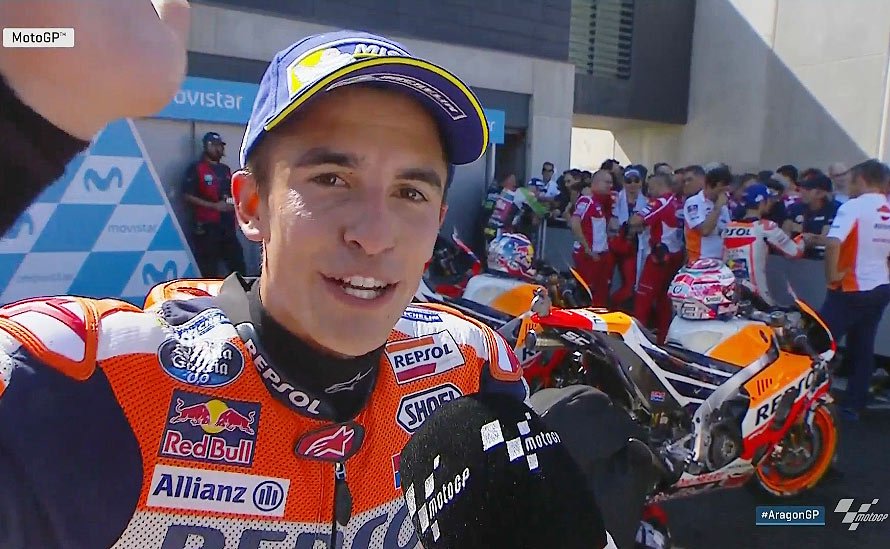 A peine descendu de sa Honda RC 213 V officielle qui lui a permis de remporter le Grand Prix d’Aragon au terme d’une remontée durant laquelle il n’a pas ménagé ses efforts, Marc Márquez s’est confié au micro du site MotoGP.com.