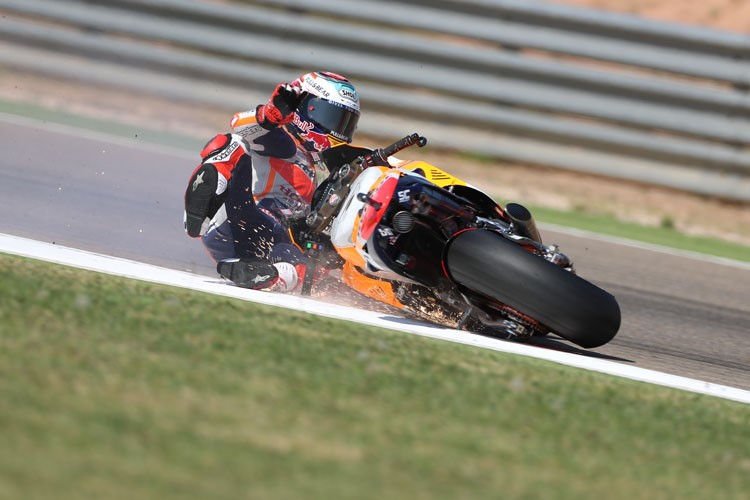 Les vieux démons de Marquez l'ont encore flanqué par terre. Pour une fois, il ne partira pas en pole en Aragon.