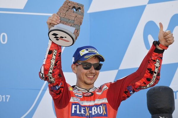 Lorenzo a réalisé en Aragon sa plus belle course depuis qu’il est arrivé chez Ducati l’hiver dernier. Il a réussi à s’emparer du commandement dès le départ, puis à mener les quinze premiers tours de la course avant de monter sur la troisième marche du podium.