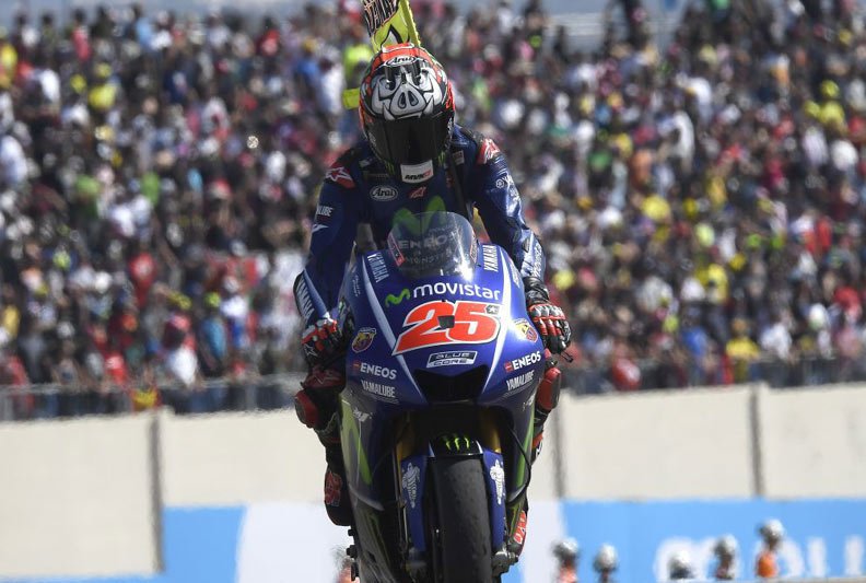 Qualifié en pole position, Maverick Viñales s’élançait moins bien que Jorge Lorenzo et, comme il peinait à trouver de l’adhérence avec son pneu arrière dur, il devait ensuite laisser passer Valentino Rossi, Andrea Dovizioso et Marc Marquez lors de deux premiers tours assez catastrophiques.
