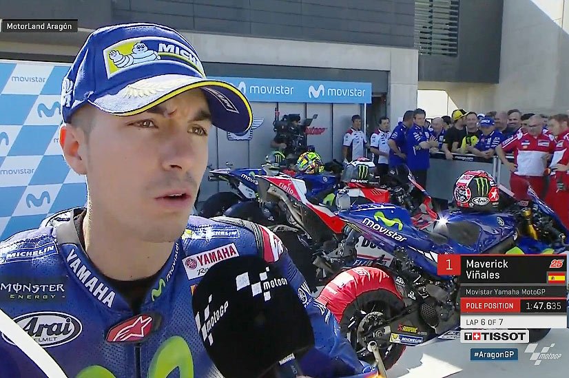 A peine descendu de sa Yamaha M1 officielle après avoir finalement obtenu la pole position de ce Grand prix d’Aragon, Maverick Vinales s’est confié au micro du site MotoGP.com, tout à sa joie d’être compétitif sur le sec après avoir connu des moments difficiles sur le mouillé depuis le début du week-end…