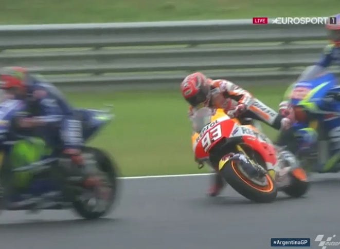 En conférence de presse, il déclarera: « (rires) Oui, oui, oui. C’était la première fois que je faisais un départ sur le mouillé avec cette moto. Oui, j’ai fait comme pour un départ normal sur le sec et quelque chose s’est mal passé. J’ai été très près (de chuter) mais OK, je ferai plus attention demain. “