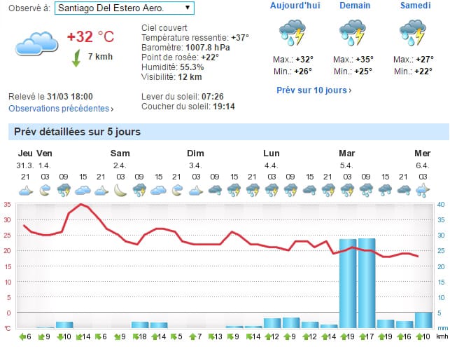 Pour vous tenir informés de l’évolution des prévisions dans la province de Santiago del Estero, voici différents liens: