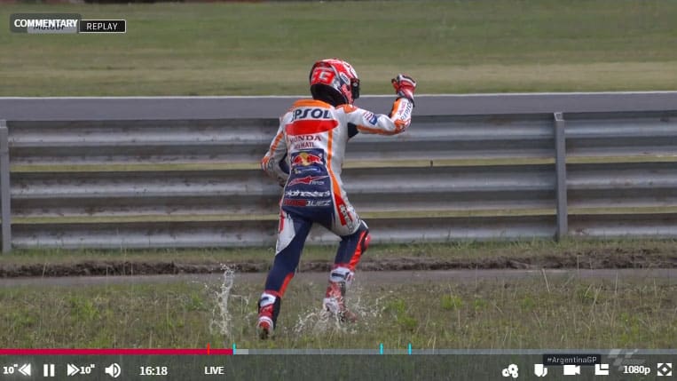 That's something you don't see everyday! 👀@marcmarquez93 chain breaks early in FP4, the World Champion is now hitching a ride back to pits! 💥#ArgentinaGP 🇦🇷 pic.twitter.com/2pHAQYaGh0
