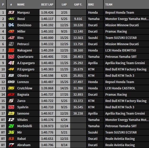 Classement Grand Prix d’Argentine MotoGP à Termas de Rio Hondo :