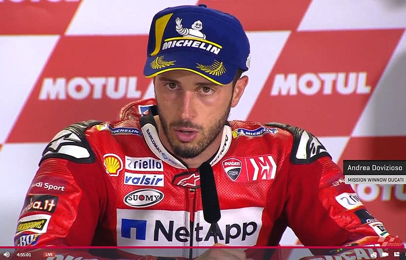 Comme à notre habitude, nous reportons ici les propos bruts de Andrea Dovizioso, sans la moindre interprétation journalistique.