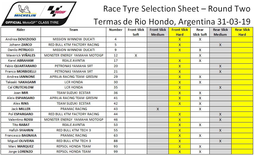 Voici les références disponibles au moment où les pilotes se préparent pour cette second manche du calendrier 2019 du MotoGP qui comptera 25 tours.