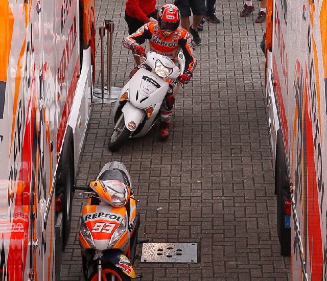 C’est une journée pleine d’émotions qu’a vécu un Marc Márquez qui n’a pas ménagé sa peine sur la piste. Mais aussi en dehors ! Toujours aussi déterminé et motivé, le double Champion du Monde est allé jusqu’à subtiliser le scooter d’un photographe pour rejoindre son stand après avoir chuté. Cette péripétie mise à part, l’inquiétude est grande au sujet de la tenue du pneu avant sous la pluie. Et elle est partagée par tous ses collègues.