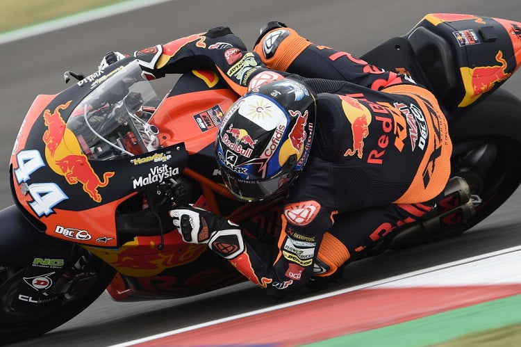 Bendsneyder se met par terre au virage 12 avec une Mistral 610 qui semble souffrir puisque Gardner est seulement 22ème. A cinq minutes du terme, Lowes bondit second et assure désormais un trio KTM aux premières positions. Remy Gardner confirme une mauvaise journée pour Tech3 en tombant au virage 9.