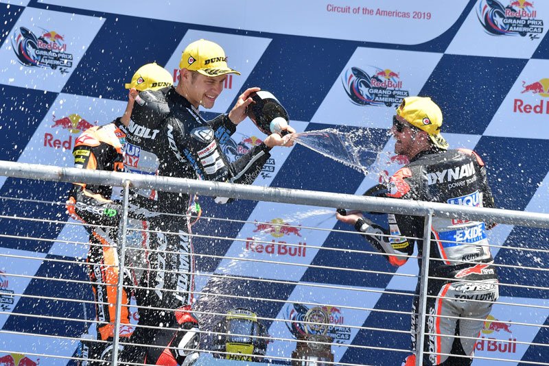 Tom Lüthi : « Je suis vraiment vraiment heureux ! Lorsque je suis passé premier sous le drapeau à damiers, j’ai immédiatement commencé à crier dans mon casque. C’était un sentiment incroyable. C’est incroyable de remporter à nouveau une victoire et d’être de retour devant. Tout le week-end s’est bien passé. Nous avions un bon rythme et je savais que je pouvais être rapide. Mais le gars à côté de moi dans le garage a été plus rapide que moi tout au long des essais et je pense que ce n’était pas trop mal car cela m’a mis une grosse pression. Nous avons dû nous battre fort pour trouver les bons réglages. Je tiens à remercier mon équipe pour cet effort incroyable et pour le fait que nous sommes de retour au sommet. À cause du résultat blanc en Argentine, je savais que j’avais vraiment besoin de points aujourd’hui et que je devais faire une course intelligente. J’ai pris un bon départ et j’ai pris la deuxième place dès le début. Puis j’ai dû me battre contre Álex Márquez, qui est retourné à l’intérieur du virage alors qu’il n’y avait pas de place, donc nous nous sommes touchés. Il a essayé de me laisser derrière, mais j’ai réussi à le dépasser et à rester devant ».
