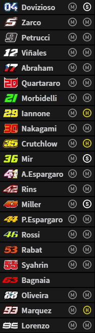 Fabio Quartararo est 11e, Jorge Lorenzo 13e, Johann Zarco 13e.