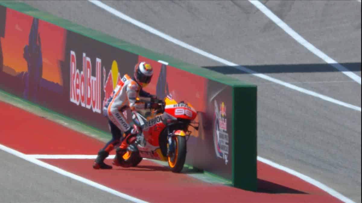 After suffering a slipped chain in #AmericasGP Q2, @lorenzo99 had to run back to the box to jump on his second bike, just as @marcmarquez93 did in 2015 😱