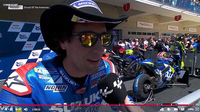 A peine descendu de sa Suzuki GSX-RR officielle après avoir obtenu une très belle et première victoire en MotoGP lors du Grand Prix des Amériques, Álex Rins s’est confié devant la caméra du site MotoGP.com, avec la sensation de vivre un rêve éveillé…