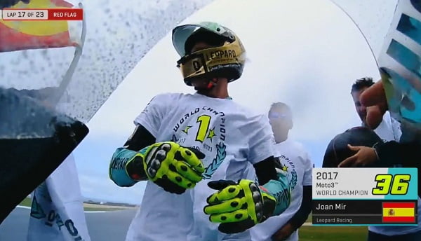 Tout en remportant ce Grand Prix d’Australie interrompu au drapeau rouge en raison de la pluie, Joan Mir était sacré Champion du Monde Moto3 2017 après une saison magnifique, et il est indéniable qu’un superbe avenir l’attend dans les catégories supérieures. Bravo à lui !