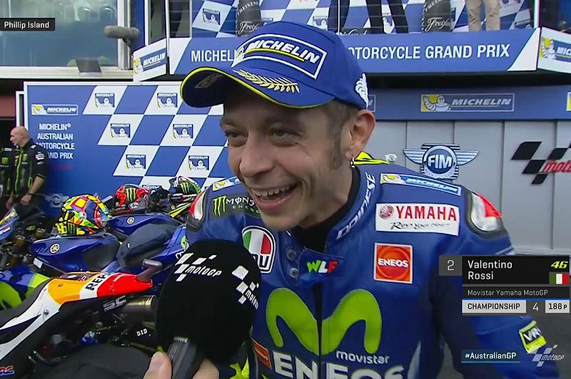 A peine descendu de sa Yamaha M1 officielle après avoir rallié l’arrivée en deuxième position d’un époustouflant Grand Prix d’Australie, Valentino Rossi s’est confié au micro du site MotoGP.com, tout à sa joie d’avoir retrouvé une machine compétitive et d’avoir pu réaliser une course extraordinaire.