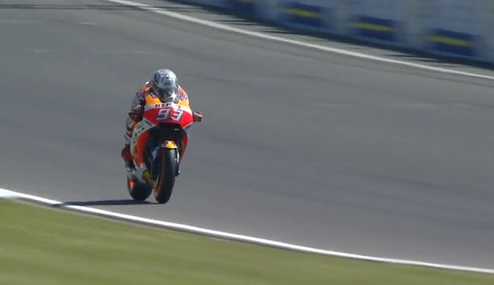 Le premier run s’achève avec la hiérarchie suivante : Márquez en 1’29.602, Dovizioso, Iannone, Vinales, Crutchlow, Pedrosa, Zarco, Rossi, Lorenzo et Miller.