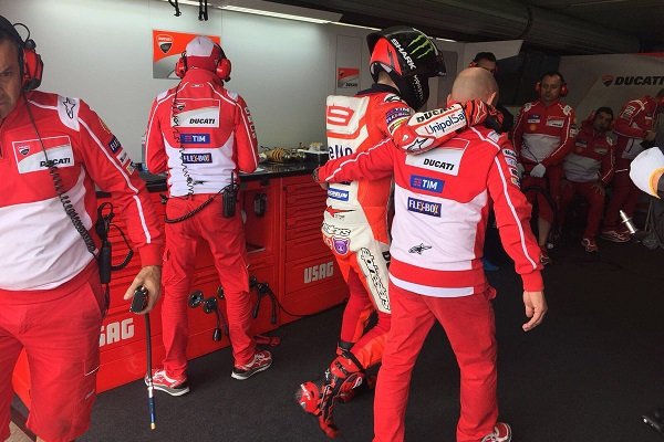 Lors des essais libres, Jorge devait se contenter du onzième temps final, ce qui ne le qualifiait pas directement pour la Q2. De toutes les Ducati, seule celle d’Andrea Dovizioso figurait dans les dix premiers, à seulement neuf centièmes de Marc Marquez. Mais si le temps de Marc avait été effectué en pneus usagés, celui d’Andrea l’avait été avec un train de pneus neufs. La différence n’apparaissait pas, bien qu’elle fût réelle.