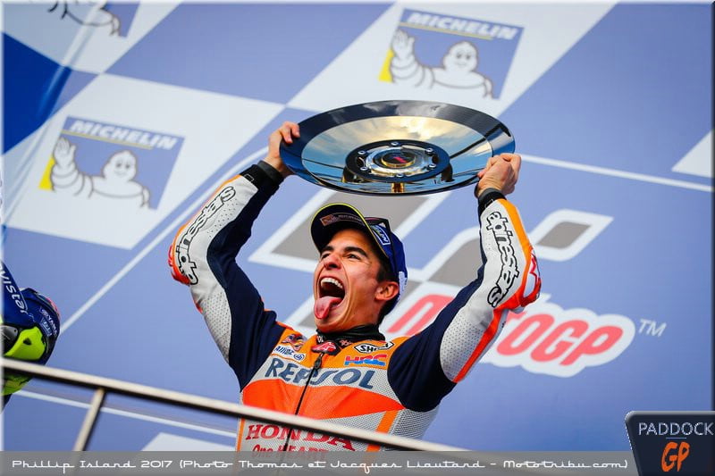 Lors de ce Grand Prix d’Australie qu’il a remporté, Marc Márquez a à la fois fait preuve de prudence en début de course, mais aussi de bravoure et d’attaques parfois optimistes un peu plus tard, allant même jusqu’à toucher Valentino Rossi avec sa roue avant. Une manœuvre risquée dans laquelle il a bien failli perdre la course au lieu d’inscrire sa sixième victoire de l’année…