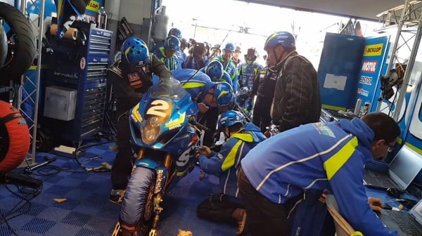Le SERT a reçu une pénalité « stop and go » car un mécanicien n’avait pas de casque dans la voie des stands et parce que la moto était « poussée en dehors d’une zone autorisée ». Puis la chaîne cassait et Gregg Black devait ramener la GSX-R en la poussant. La Suzuki perdait énormément de temps dans l’aventure et rétrogradait en huitième position à quatre heures de l’arrivée.