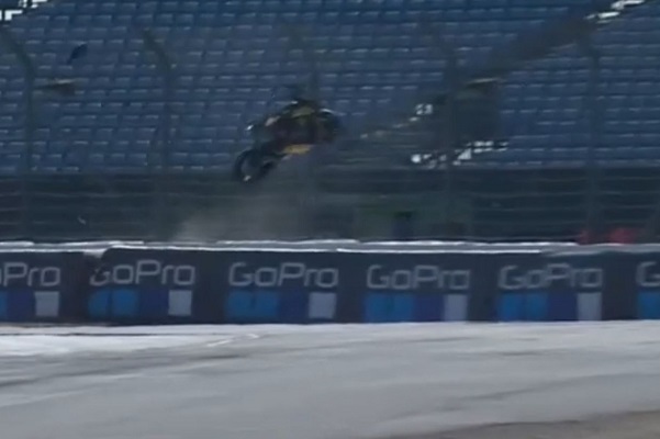 Lors du début de la séance de warm up du dernier British Grand Prix, Jonas Folger, après la longue ligne droite où l’on atteint une vitesse maximale supérieure à 320 km/h, est arrivé dans la courbe de Stowe sans frein avant. Il a essayé de pomper trois fois avant d’utiliser en secours le frein arrière et de sauter de sa Yamaha M1. Suite à sa terrible chute, l’Allemand était évacué avec une commotion cérébrale qui le contraignait à déclarer forfait pour le Grand Prix.
