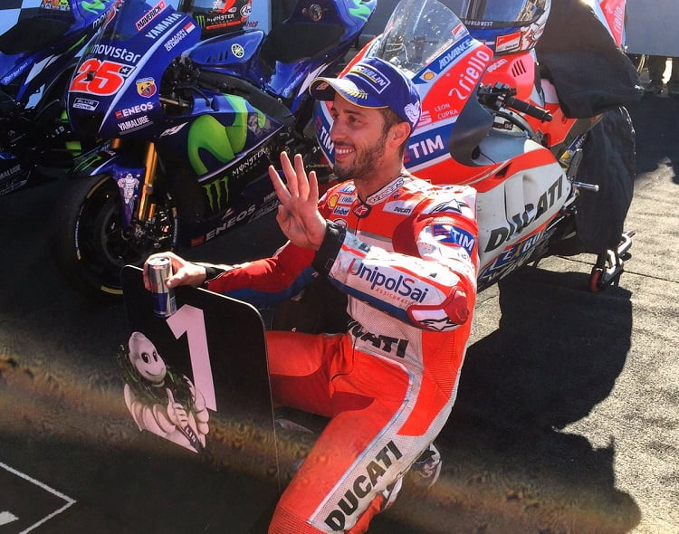 Car Andrea Dovizioso a une fois encore montré toute sa maîtrise sur la Desmosedici. On peut même dire qu’il est au sommet de son art DesmoDovi et on n’oubliera pas qu’avant que le moteur de la Honda ne trahisse un Marc Márquez KO debout, il était devant l’officiel du HRC tout en recollant au leader d’alors Rossi.