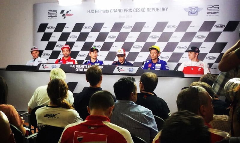 Pour en discuter, Marc Marquez, Jorge Lorenzo, Andrea Iannone, Valentino Rossi, Alvaro Bautista et Scott Redding étaient les invités de la conférence d’ouverture du Grand Prix de République Tchèque.