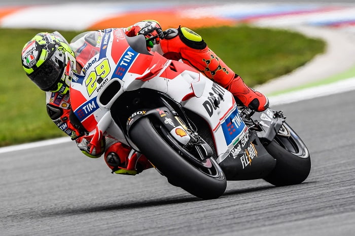 C’est un Andrea Iannone heureux mais fatigué qui termine sa première journée en République Tchèque. Fatigué, car son accident durant la trêve estivale suite à une chute en motocross s’est rappelé à son mauvais souvenir : « j’ai beaucoup souffert l’après-midi, mais c’était pire le matin. Mais j’irai mieux avec des analgésiques appropriés pour les qualifications et pour la course ». On notera que l’officiel Ducati a terminé en tête de la matinée et second de l’après-midi. Heureusement pour ses adversaires qu’il n’est pas en pleine possession de ses moyens !